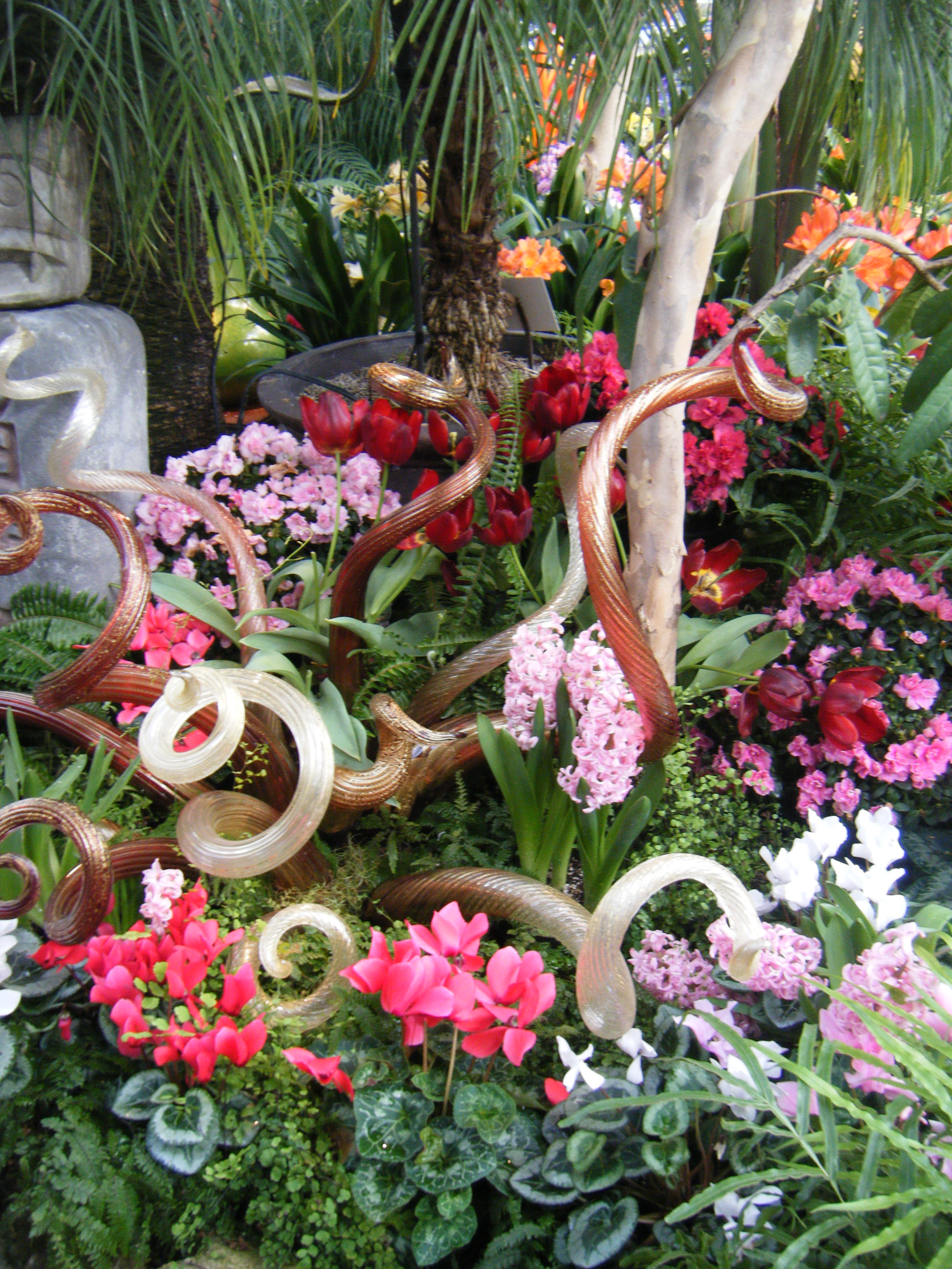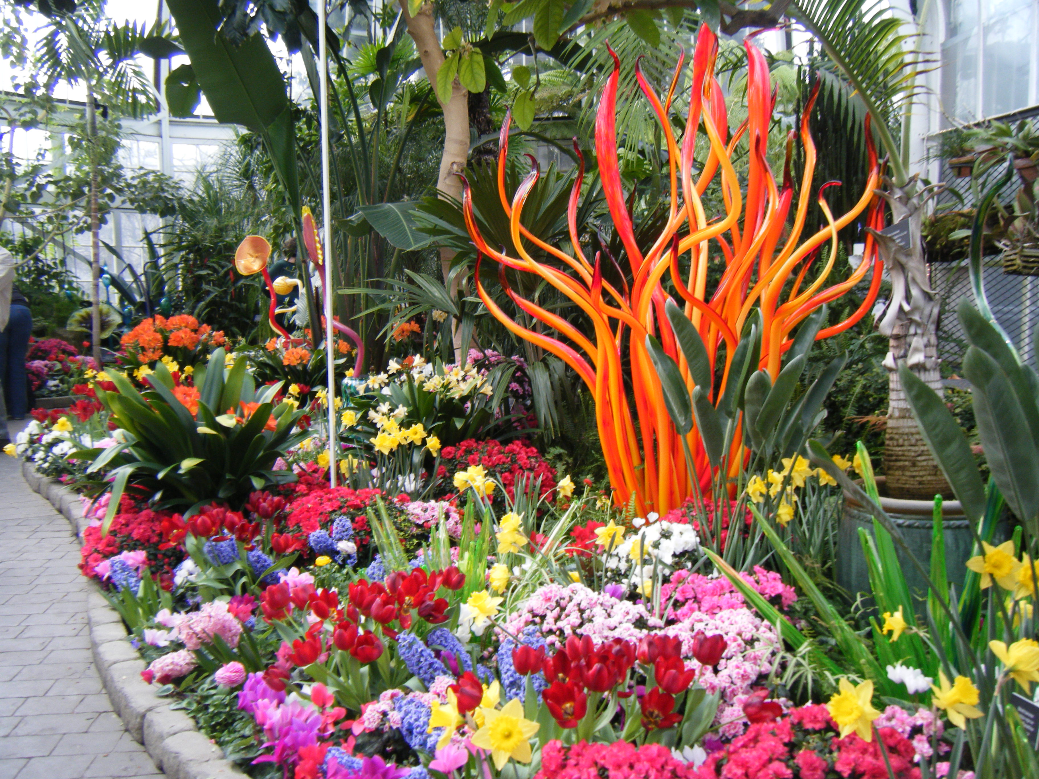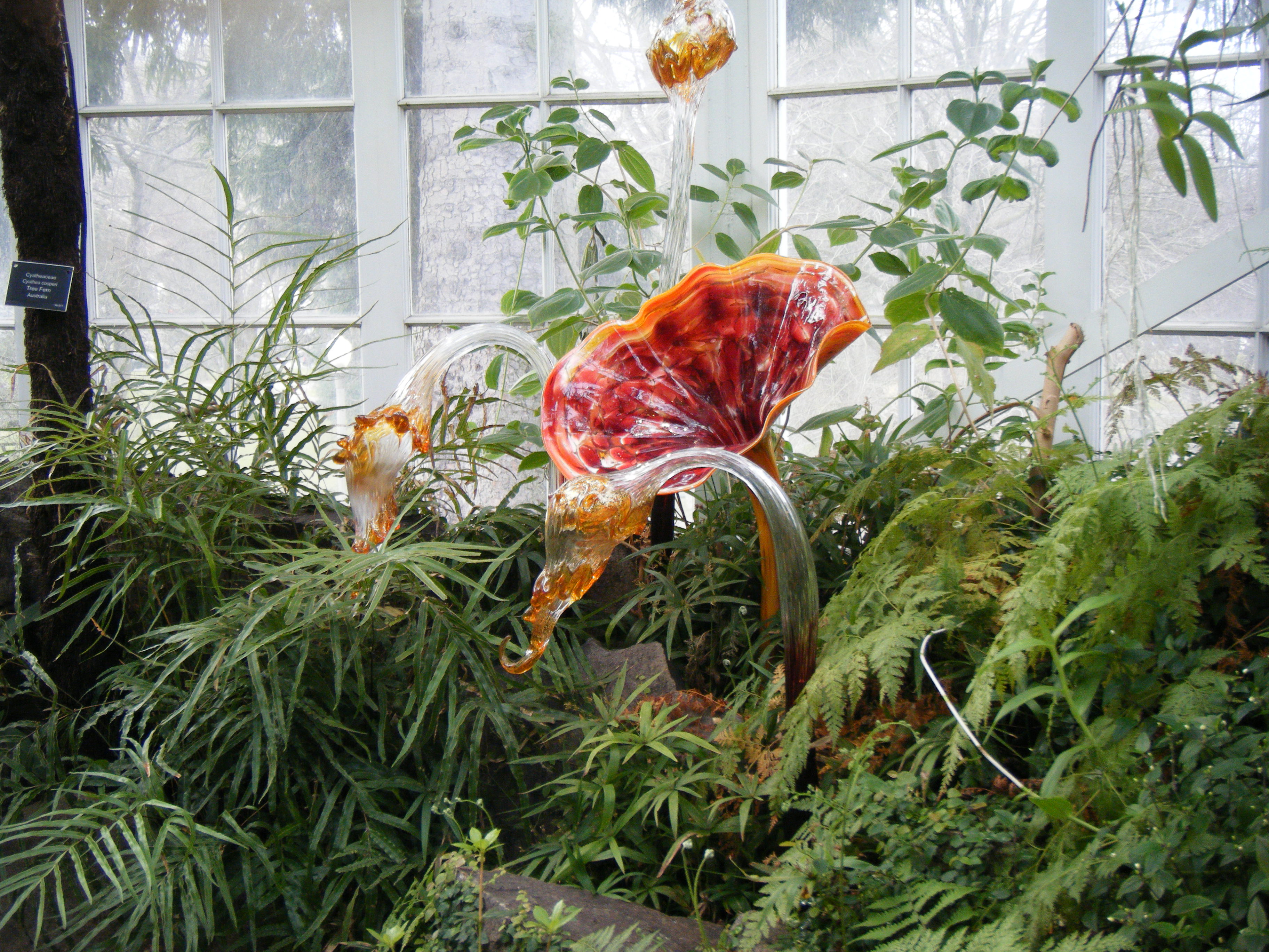 So, my mom called and suggested we visit an art glass exhibit occurring inside the Seymour Botanical Conservatory. Since I like plants, especially the flowering varieties, and enjoy working with glass – this seemed like one of those don’t-miss-it-opportunities. Off we went, and it was pretty nifty.