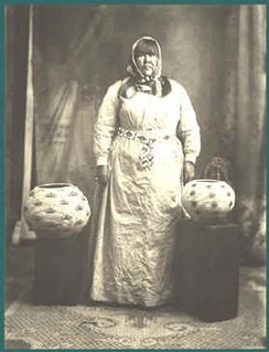 Datsolalee was also known by her anglo name of Louisa Keyser. A member of the Washoe tribe, she broke away from traditional forms of basketry, altering the shape and refining a stitching technique to create a form that came to be called degikup.  This degikup was a large basket which curved inwards toward the top rim and featured an expanded design covering most of the basket surface. Her work was influential in creating a “curio” style of basketry that appealed to collectors. She was a very talented basket weaver, completing over 250 baskets in her lifetime.